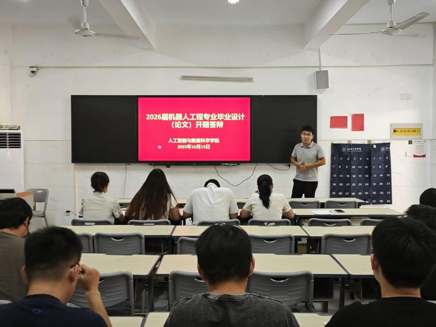 2025年10月15日,人工智能与数据科学学院2026届毕业生开题答辩顺利举行。机器人工程、大数据、计算机科学三大教研室同步推进,答辩评委组由各专业骨干教师组成,围绕课题价值、方案可行性等核心维度严格评审,为学子学术实践之路精准导航。