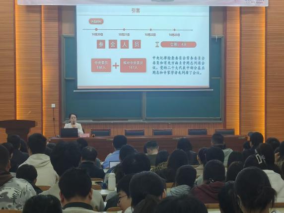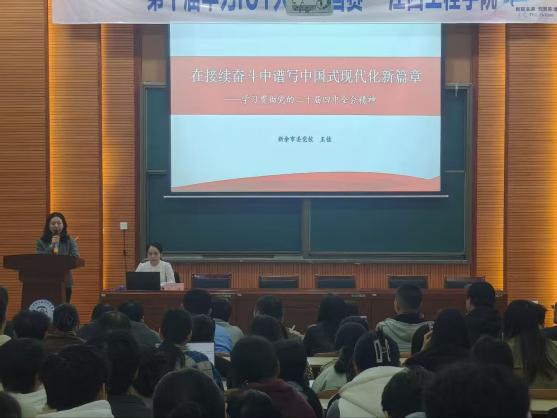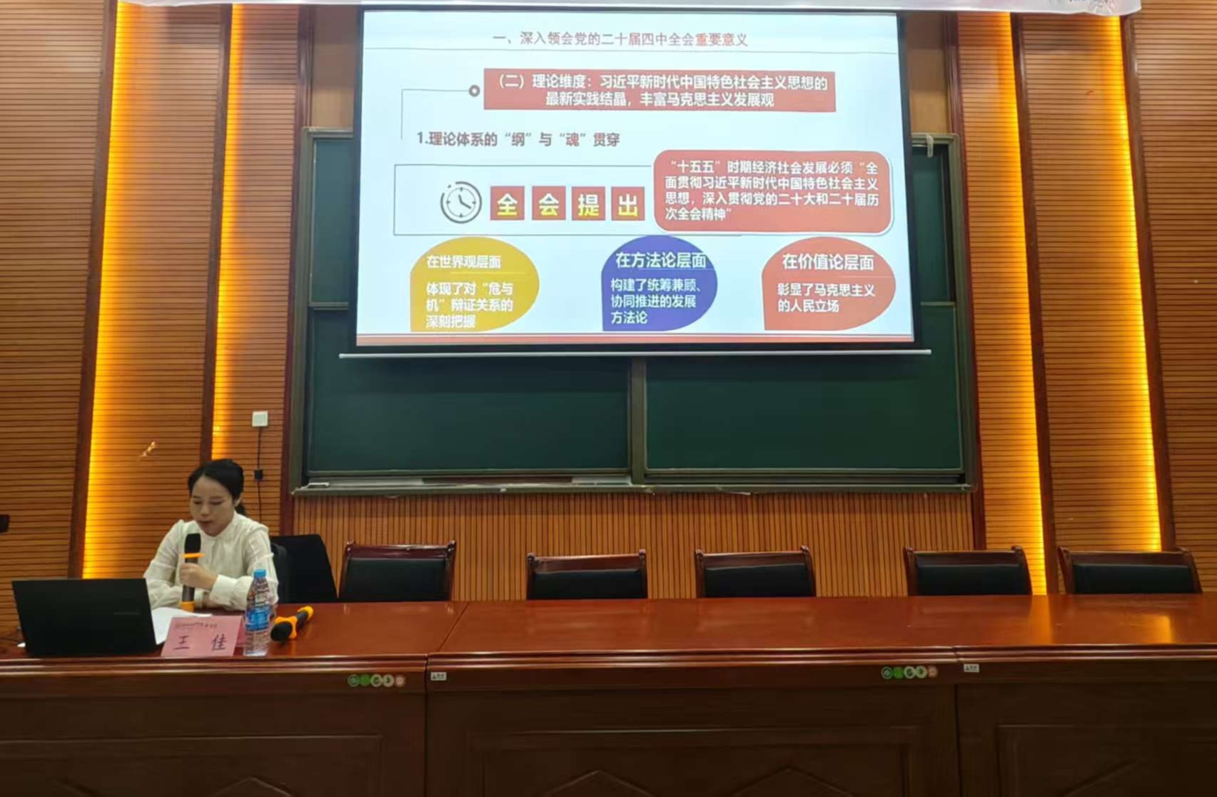 王佳教授深耕党的理论研究领域多年,兼具扎实的理论功底与丰富的授课经验。讲座中,她围绕三大核心内容展开系统讲解:一是深入阐释党的二十届四中全会的重大历史意义与理论价值,帮助师生理解全会对于推进中国式现代化的重要指引作用;二是全面解读全会提出的新思想、新论断、新部署,结合新时代发展要求,明晰中国式现代化的奋进路径;三是明确师生践行全会精神的责任要求,引导大家立足本职岗位担当作为。