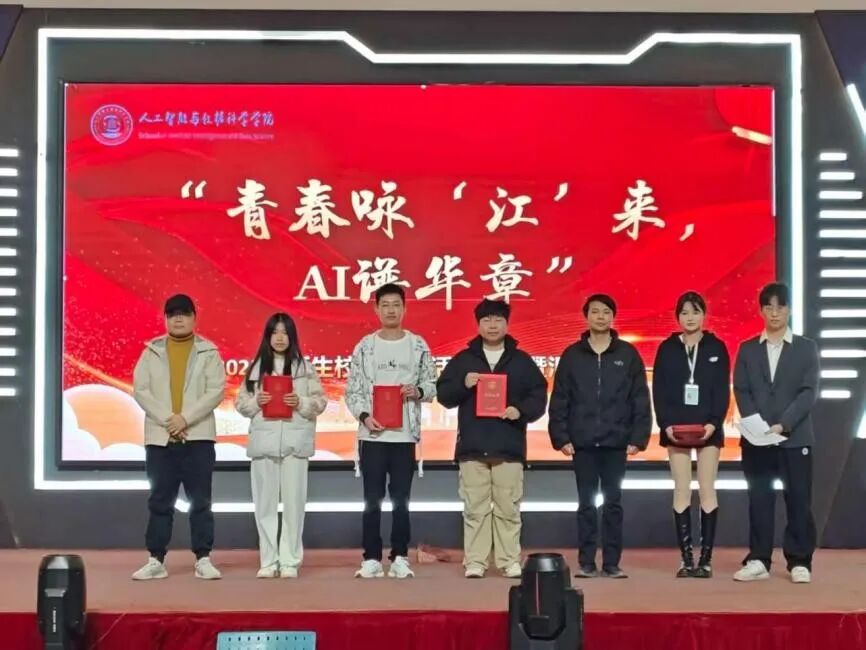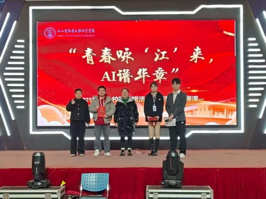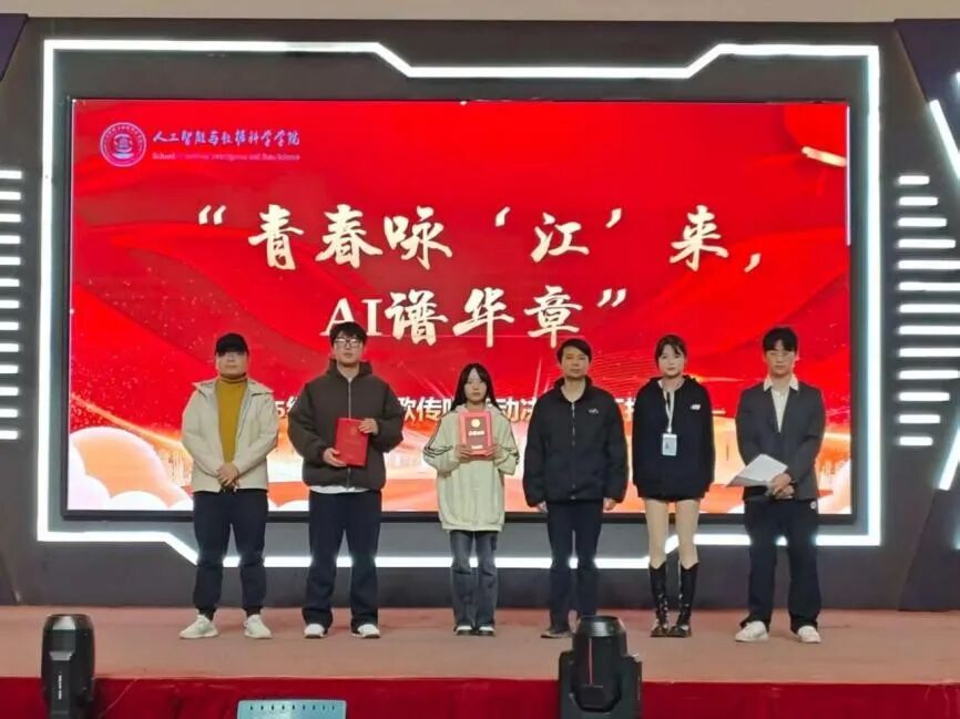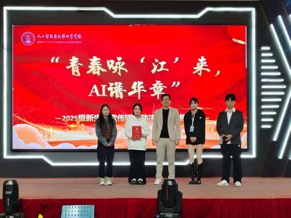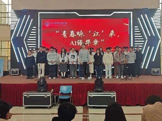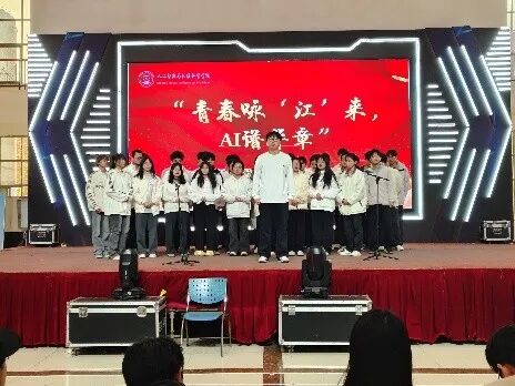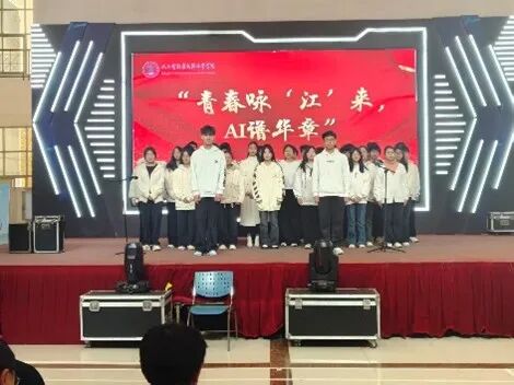 本次校歌传唱活动启动以来,得到了2025级(含2023级专升本班级)14个新生班级的积极响应。活动旨在通过校歌传唱这一形式,增强新生对学校的归属感和认同感,弘扬“勤朴敏信”的校训精神,同时展现人工智能与数据科学学院学子朝气蓬勃的精神风貌。经过前期激烈的角逐,8支优秀队伍最终用最饱满的热情、最创新的形式,为全场师生献上一场视听盛宴。青春咏“江”来,AI谱华章:“江”既指江西工程学院,也谐音“将”,寓意唱响未来;“AI”既代表学院专业特色,也寓意用“爱”与智慧谱写青春篇章。
