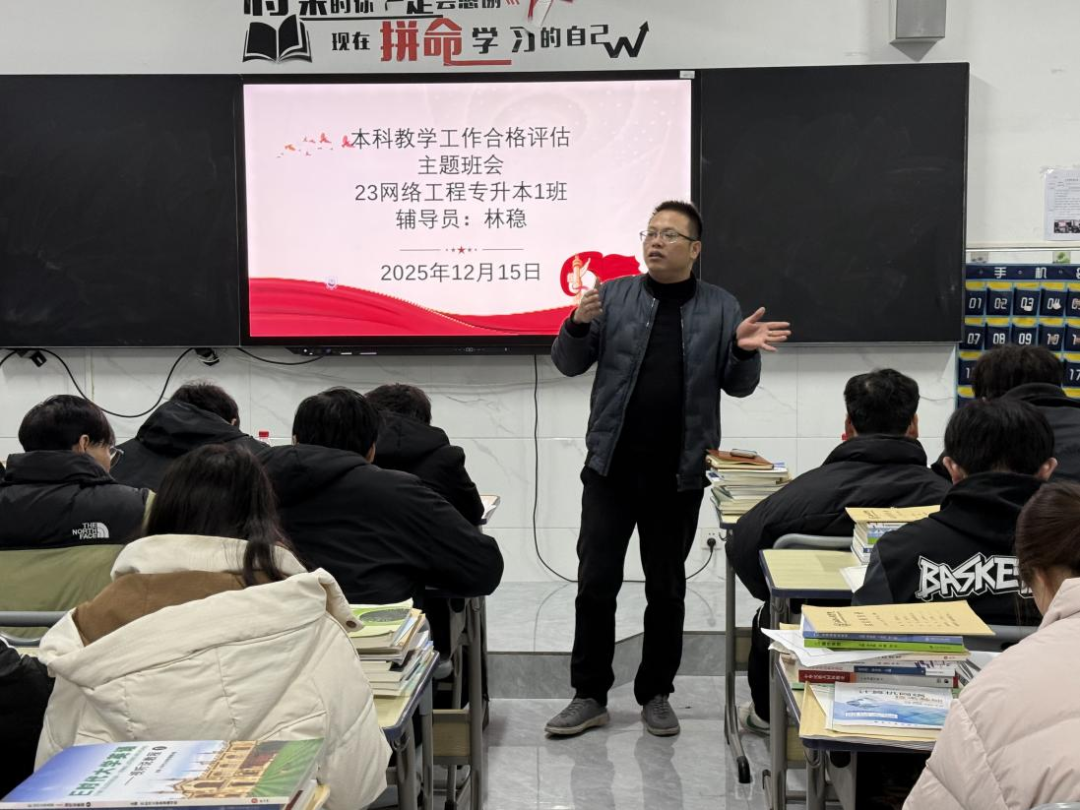 2025年12月15日,人工智能与数据科学学院多措并举推进本科教学工作合格评估迎评工作,先后召开评估动员会、组织各班开展主题班会,凝聚全院师生力量做好迎评准备。