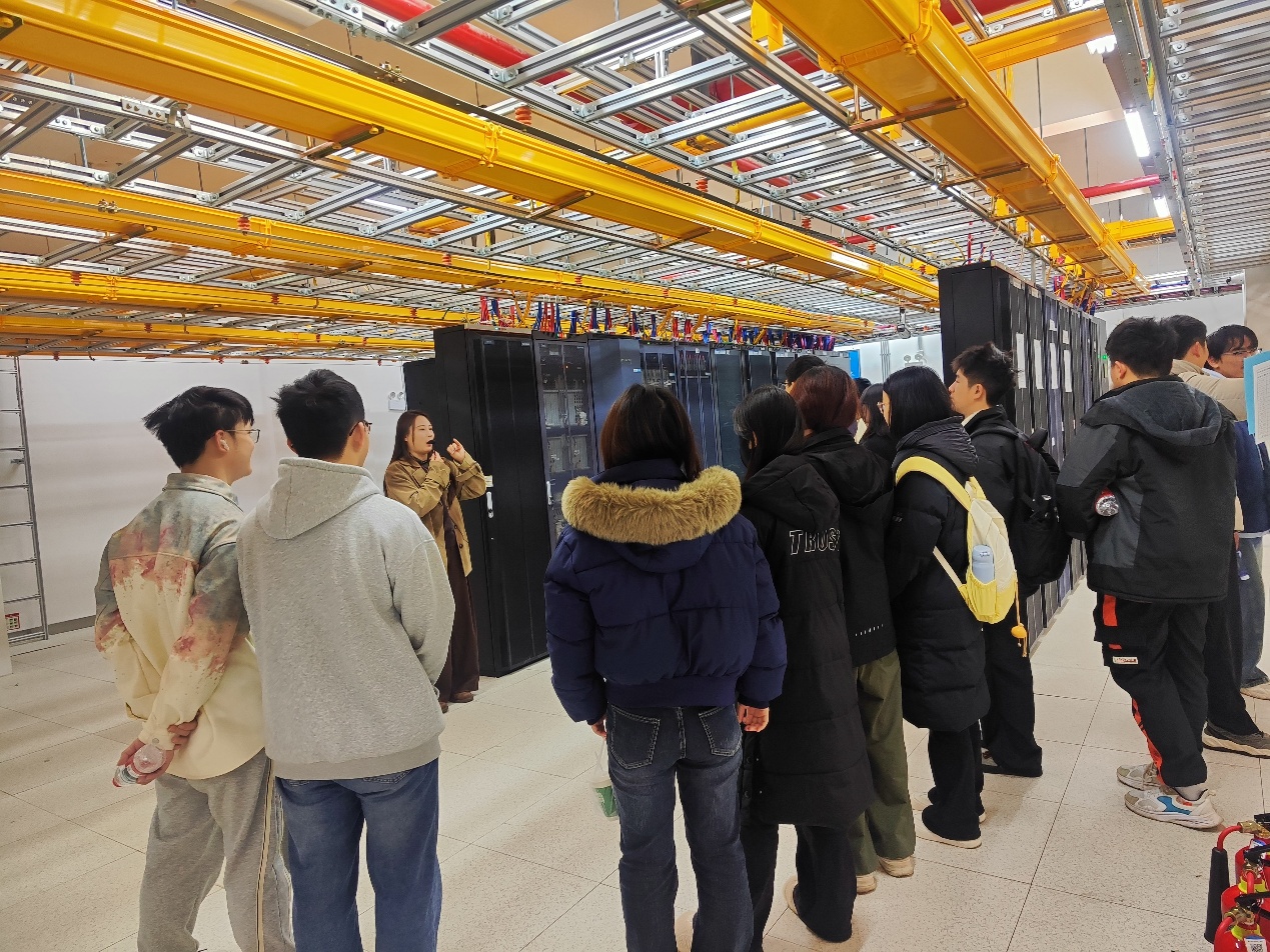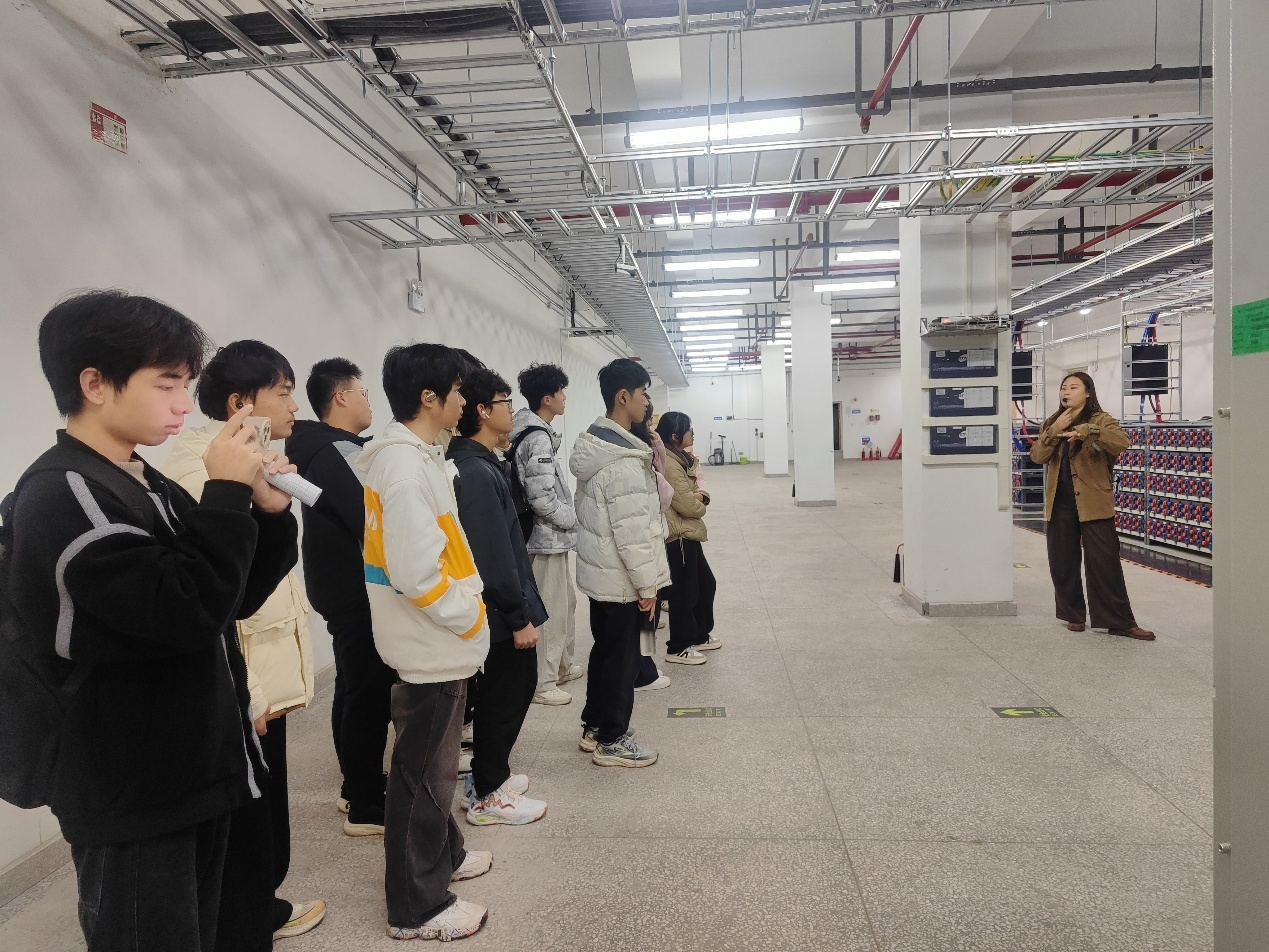 机房内,一排排整齐的服务器机柜、密布的光纤线路、实时监控的大屏以及恒温恒湿的运行环境,让2025级新生第一次近距离感受到支撑亿万用户通信服务的“数字底座”。工程师详细讲解了核心网架构、数据交换原理、网络安全防护措施以及绿色节能技术。“原来我们每一次视频通话、每一笔移动支付,背后都依赖如此庞大而精密的系统!”一位同学感慨道。此次参观不仅加深了大家对即将学习的《计算机网络》《操作系统》等课程的感性认识,也让我们认识到计算机技术在通信领域的关键作用。