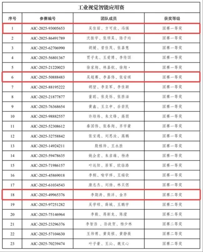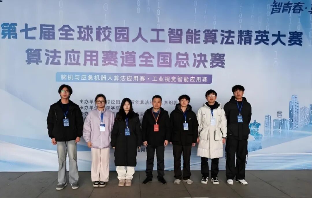 2025年12月16日,第七届全球校园人工智能算法精英大赛工业视觉赛道全国总决赛在河北邯郸举行,赛项汇聚了华中科技大学、南京大学、中南大学等全国高校115支队伍同台竞技。我校人工智能与数据科学学院机器人工程专业的三支学生队伍,凭借扎实的专业功底、稳定的临场发挥与创新性的技术方案,一举斩获全国一等奖2项(位列该赛道全国第一名),全国二等奖1项。