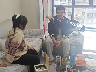 胡宇亮同学因家庭原因从专科时就在新余就读,家访中,辅导员详细了解了学生特殊的家庭成长环境。该生从小在爷爷奶奶身边长大,前几年爷爷生病和外界的交流有点费力,奶奶靠种地维持一定的家用。辅导员对学生在生活中的主动担当表达了肯定,倾听了学生对未来的期许及规划,从专科生到本科生的转变,不变的是对爷爷奶奶的关心和担忧,更是生活对学生心智的磨炼。辅导员表示生活中的困难可能会使我们失去一部分东西,但是正是这千锤百炼出来的意志是其他同学不具备的。