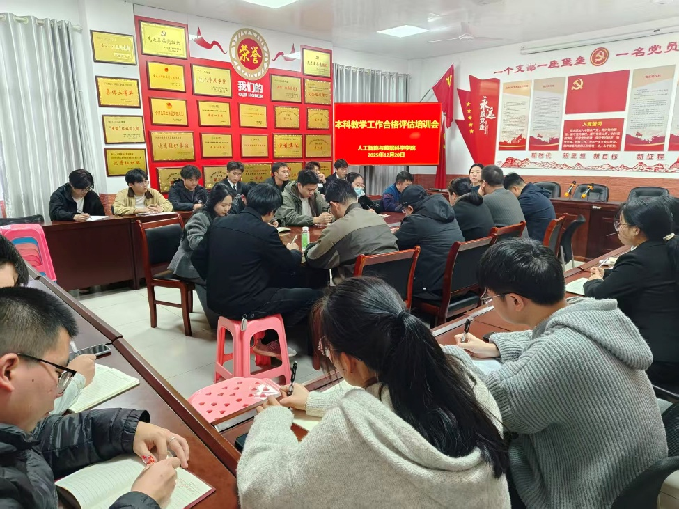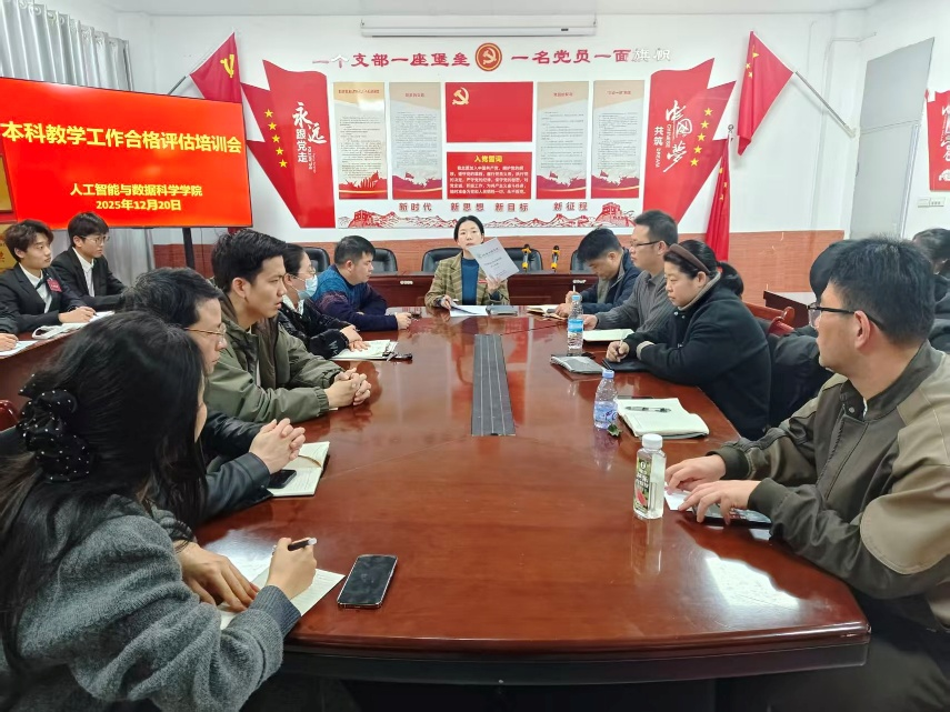 为掌握评估流程,同时解答疑问,确保评估工作高效有序推进,2025年12月20日,人工智能与数据科学学院于B504会议室举行本科教学工作合作评估培训会,由学院党总支书记王娟主持会议,党总支副书记郑智山等学院领导及各班辅导员、各位访谈学生参与会议。