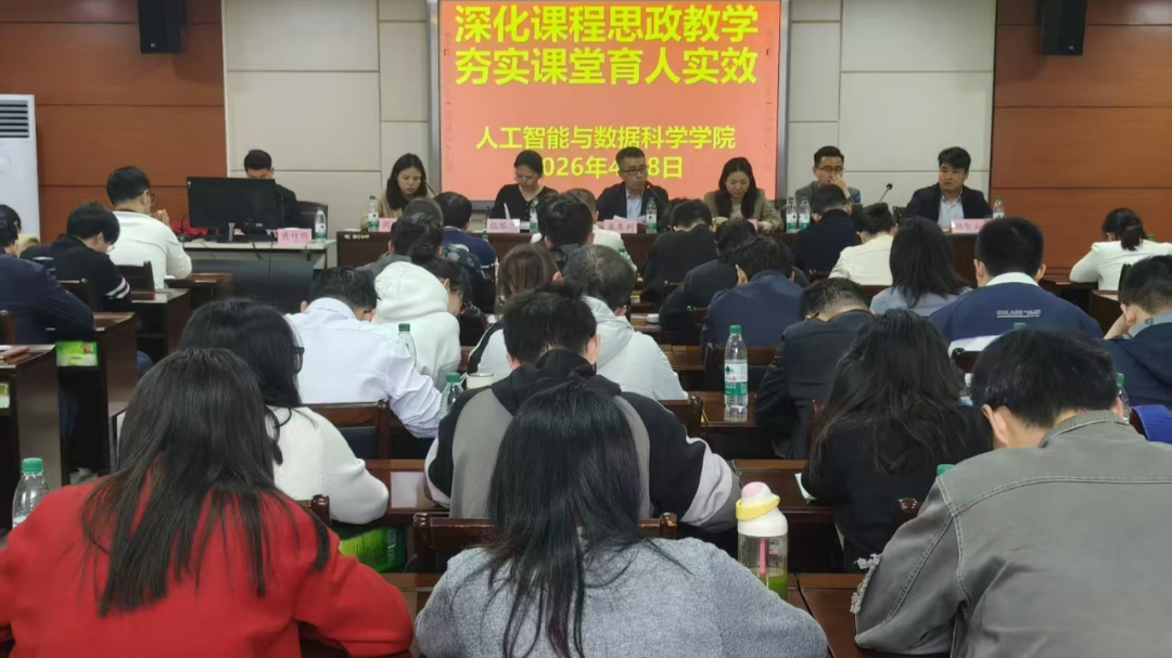 为深入落实立德树人根本任务,持续推进课程思政建设走深走实,切实提升课堂育人质量,2026年4月8日人工智能与数据科学学院在中共党校304教室召开“深化课程思政教学,夯实课堂育人实效”专题工作会。本次会议有我院院长巢喜剑,党总支书记王娟,副院长伍琴兰等学院领导出席,我院全体教师参加。