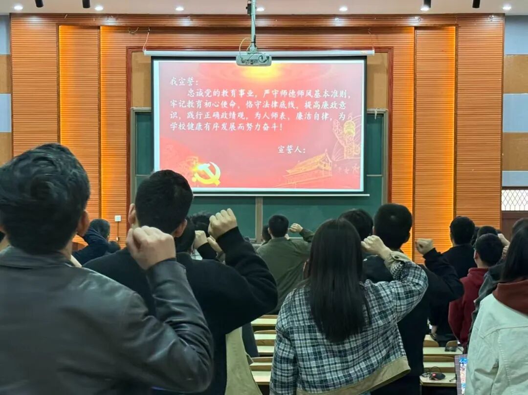 此次专题会议与宣誓活动,是学院深化师德师风建设、推进全面从严治党向纵深发展的重要举措。未来,学院将持续以党风廉政建设为抓手,常态化开展廉洁教育,引导全体教职工以高尚的师德、清廉的作风投身教育教学工作,营造风清气正的育人环境,努力培养担当民族复兴大任的时代新人,为学院教育事业健康有序发展不懈奋斗。