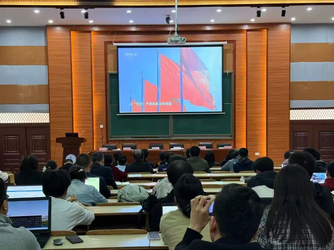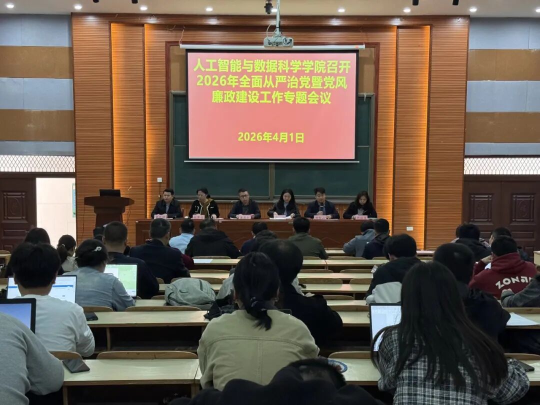 为深入贯彻落实全面从严治党战略方针,持续加强师德师风建设,筑牢廉洁从教思想防线,4月1日,人工智能与数据科学学院在二楼学术报告厅召开2026年全面从严治党暨党风廉政建设工作专题会议。学院院长巢喜剑出席会议,党总支书记王娟主持会议,学院领导及全体教职工参加会议。