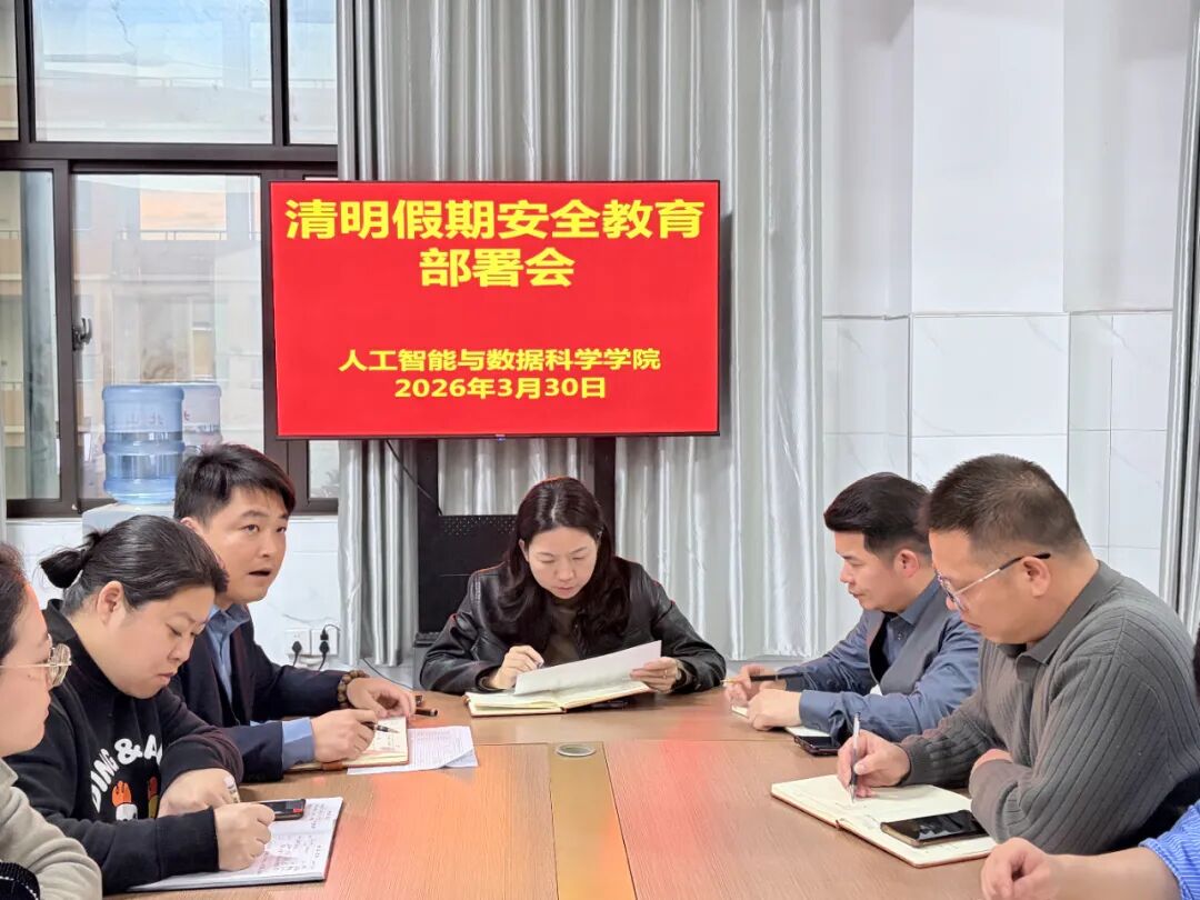 为深入贯彻落实学校关于清明节假期安全工作的相关要求,切实筑牢校园安全防线,保障全体学生假期生命财产安全,人工智能与数据科学学院于2026年3月30日召开清明节假期安全工作部署会,党总支书记王娟,党总支副书记郑智山等学院领导以及全体辅导员、班主任参会。