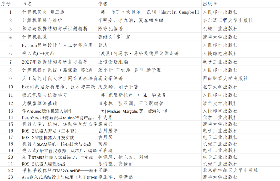 本专业书单覆盖机器人机构原理、运动控制、开源硬件、自主导航等全链条技术,从理论到实践,帮你打造机器人开发的核心能力。