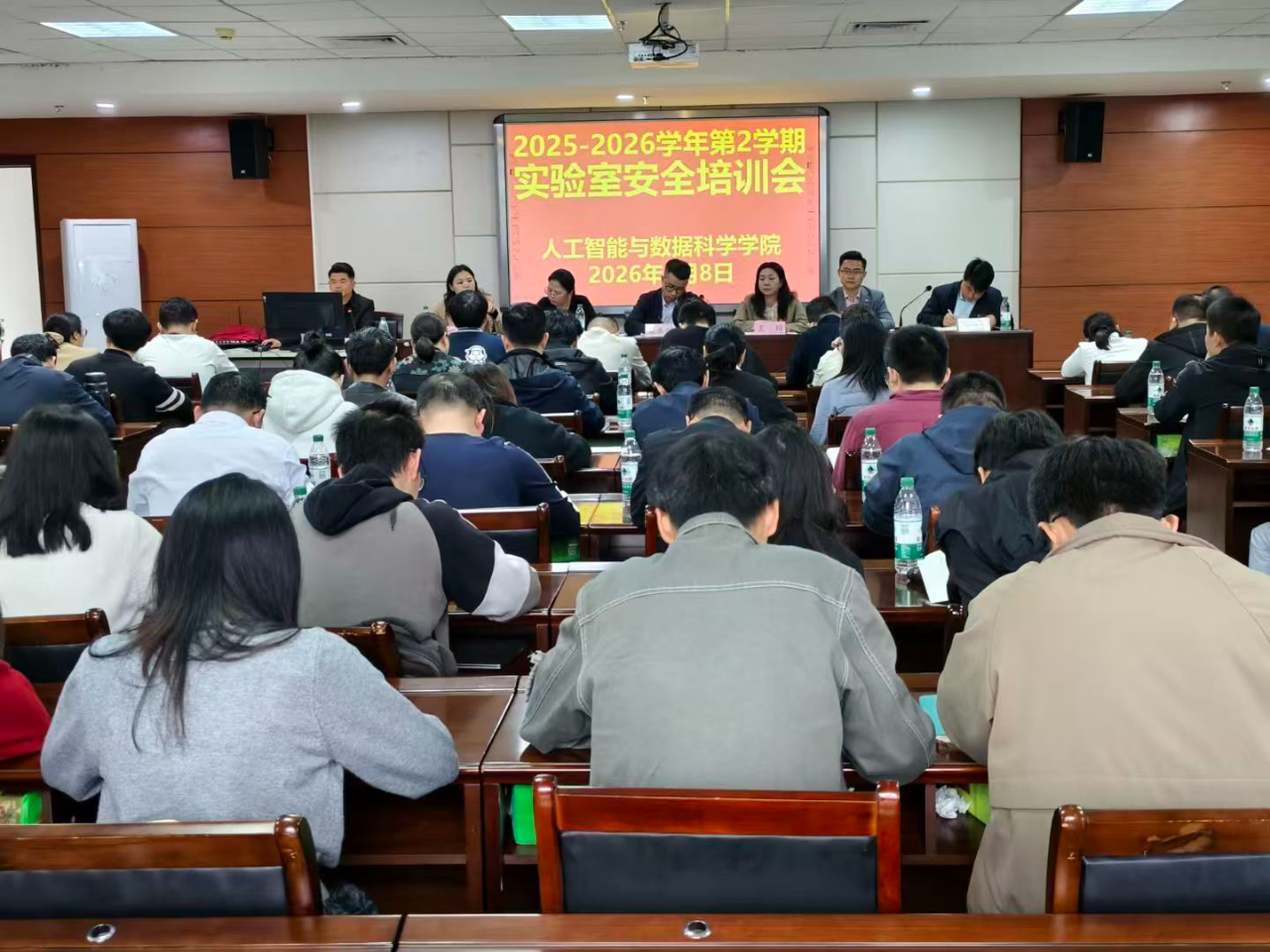 为进一步强化全院教师实验室安全意识,规范实验室安全管理,防范各类安全事故发生,切实保障师生人身安全与学院教学科研工作平稳有序开展,4月8日,人工智能与数据科学学院组织开展2025-2026学年第2学期实验室安全培训专题会议。学院院长巢喜剑、党总支书记王娟、副院长伍琴兰、党总支副书记郑智山等领导出席会议,全体教师参会学习。