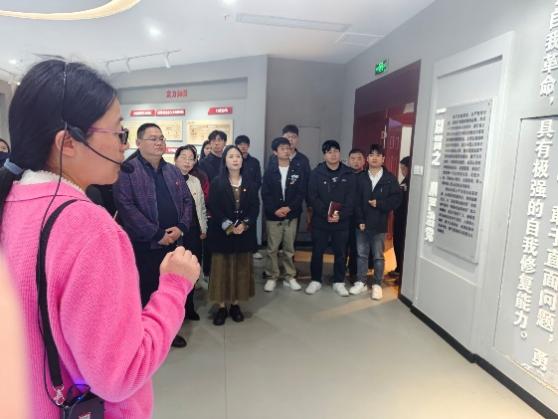 宣誓结束后,全体党员在党校讲解员的引导下,有序参观了新余市中共党校廉政教育基地。展厅内,一幅幅珍贵的历史照片、一件件斑驳的革命文物、一段段文字史料,生动再现了革命先辈浴血奋战、清正廉洁、砥砺前行的光辉历程,深刻诠释了共产党人的初心与担当。党员们驻足凝视、认真聆听,在“寻廉韵”中涵养清风正气,在“警钟长鸣”中筑牢师德师风与纪律防线。