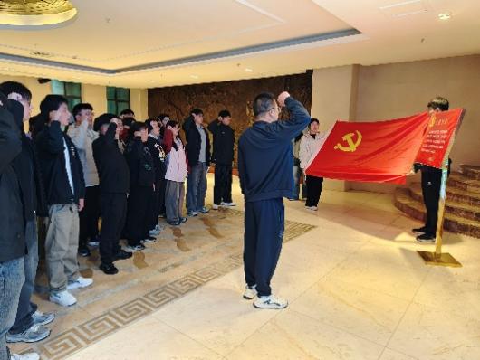 随后,全体党员佩戴党员徽章,面向党旗整齐列队,神情肃穆。在专职组织员林稳的领誓下,大家高举右拳,齐声重温入党誓词。铿锵誓言回荡在活动现场,既是对入党初心的再次叩问,也是对“赶考”精神的郑重承诺,进一步坚定了党员教师不忘初心、牢记使命、廉洁从教、立德树人的政治信念。