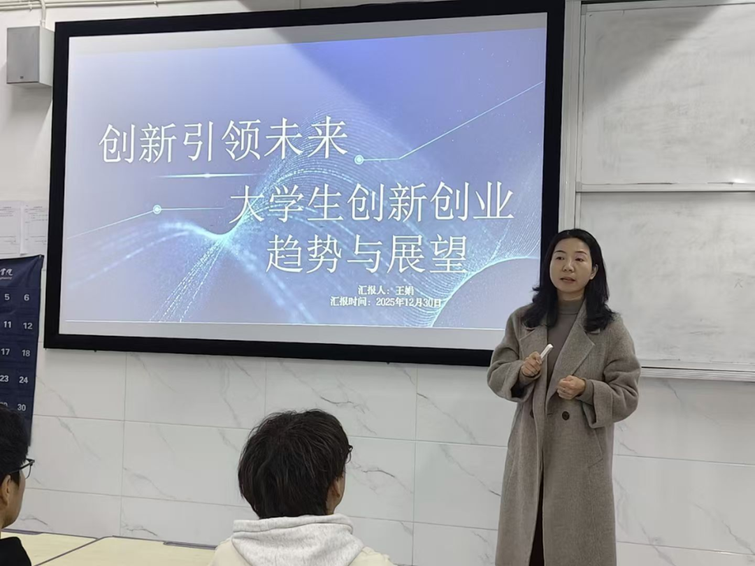 为点燃大学生创新创业的热情,拓展科创视野,12月30日,人工智能与数据科学学院于教学楼C506教室开展大学生创业趋势与展望专题讲座,此次讲座由我院党总支书记王娟主讲,我院学生积极参加。