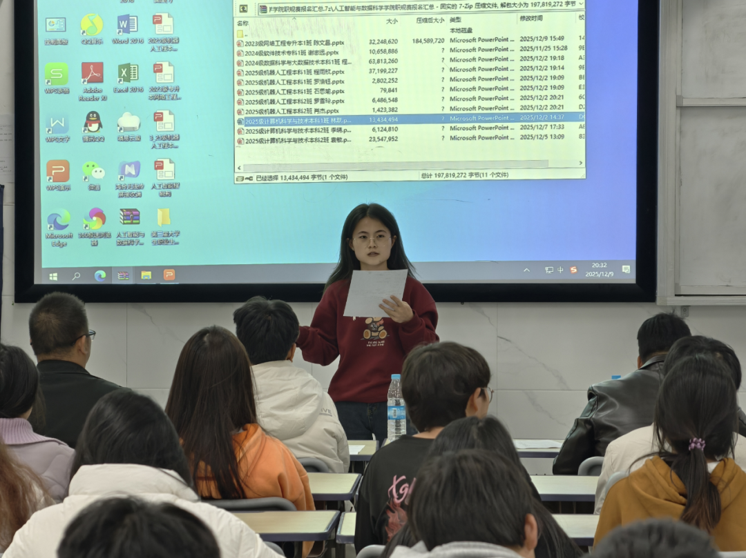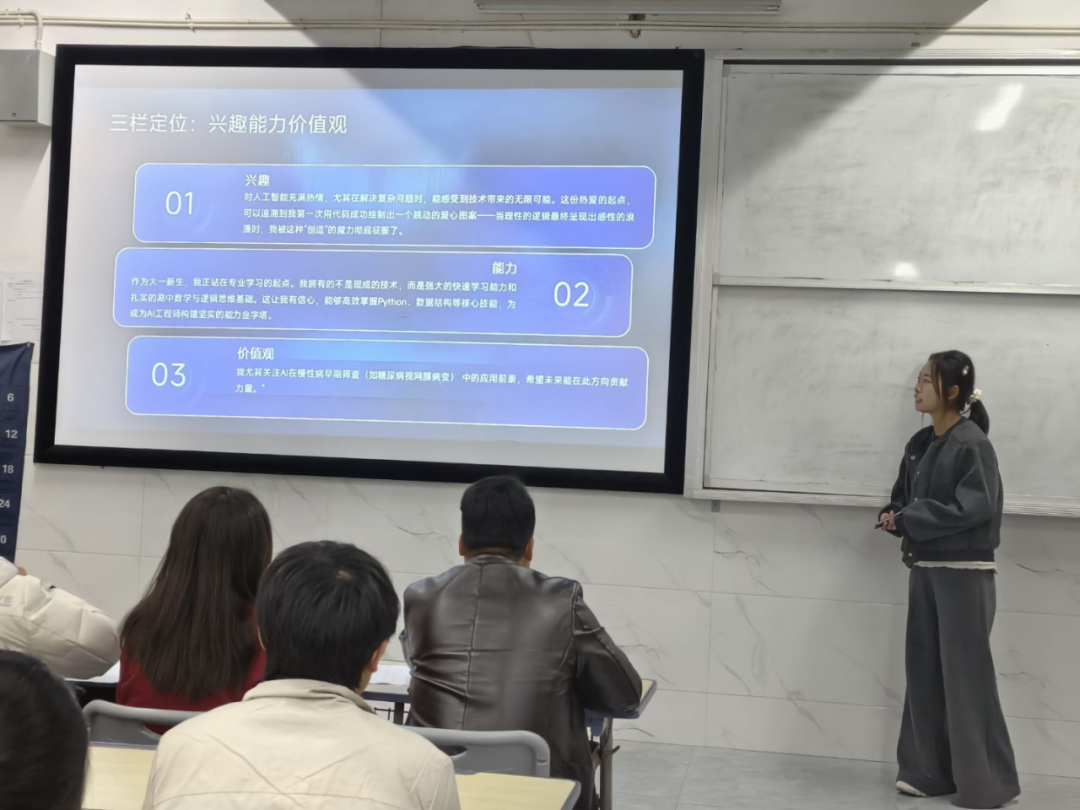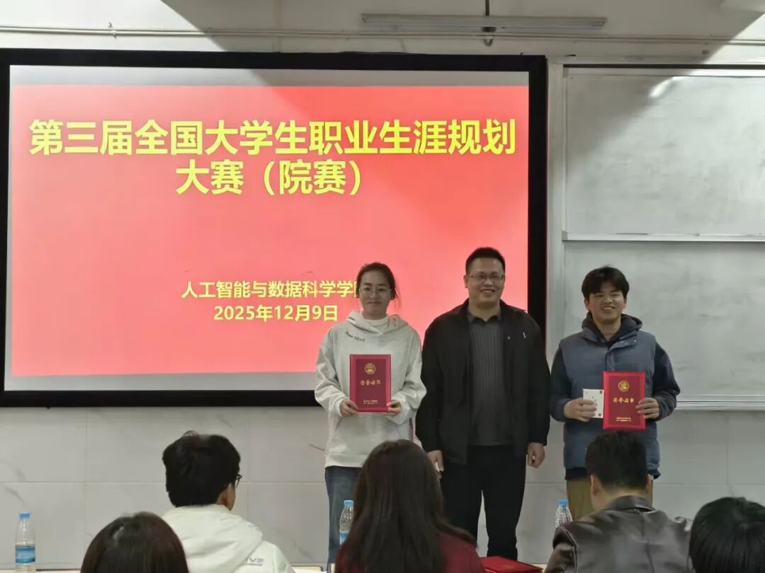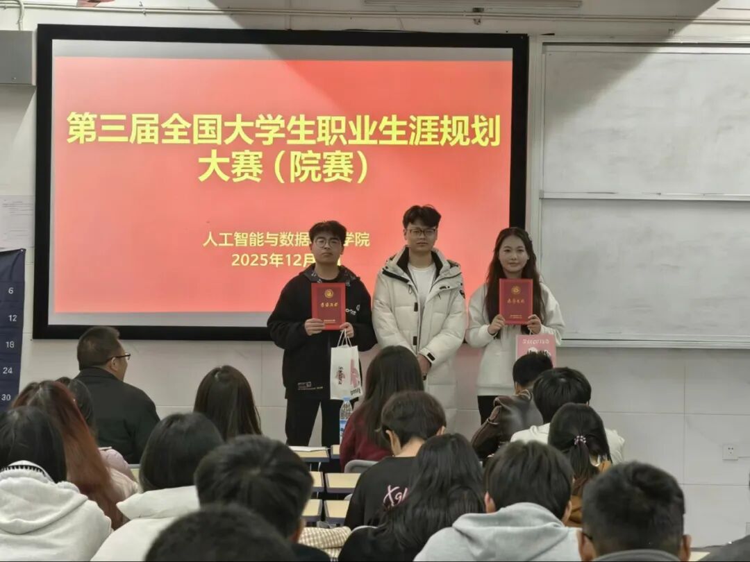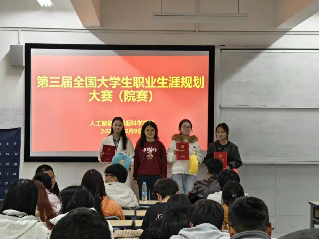 为引导学生树立正确的成才观、就业观,科学地规划职业生涯,提升就业竞争力,12月9日,人工智能与数据科学学院于C306成功举办2025年大学生职业生涯规划大赛。本次大赛有学院党总支书记王娟等领导出席,由党总支副书记郑智山主持,学院辅导员及学生参加。