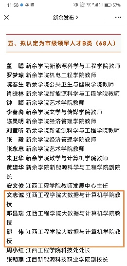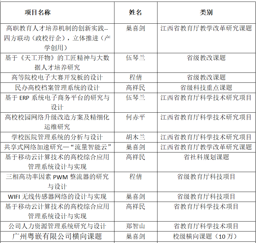 在2023年学院邓昌瑞老师荣获新余市学术和技术带头人称号以及文志成、邓昌瑞、熊伟3位教师认定为“新余市第十四批通过高层次人才”之后,今年我院李松林、邓昌瑞等老师先后被认定为江西省省级高层次人才,这是学院教师水平能力的又一次提升。值得一提的是,我校承办江西省高校HarmonyOS暑期师资培训班成功入围2022年华为全球典型案例(江西省唯一),2024年全校38名教师成功考取华为HCIP高级工程师。学院狠抓师资队伍建设,十分重视对骨干教师的继续成长,从教学能力、科研能力等方面提供机会和便利,为教师成长创造条件,教师的教育教学水平有了明显提高,为学院的飞跃发展奠定基础。