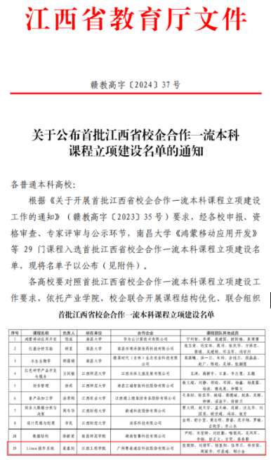 2024年3月我院成功入选“工业和信息化部工业信息安全人才培养专项行动计划”高等院校实施单位,全省仅南昌大学、江西警察学院、东华理工大学和我校四所本科院校入选,民办本科院校仅我校一所。5月26日,我院承办江西省首届工业信息安全人才培养研讨会暨江西省工业信息安全产教联盟成立大会。10月23日成功入选工业和信息化部公布的第五批“麒麟工坊”实训基地共建单位名单。